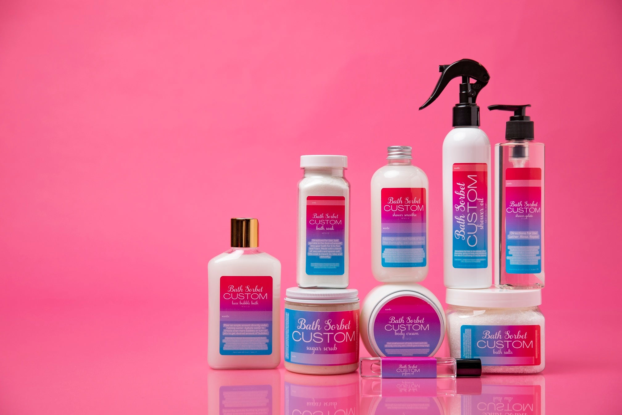 We believe bath time should be an extraordinary experience and invite you to shop our stores in person where you can create your own bath, body and shower produts. Whether you're shopping for a delightful gift or simply looking to add some magic to your self-care routine, Bath Sorbet is your one-stop destination for all things pampering and fun!